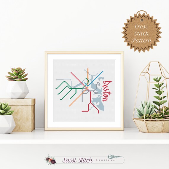 PDF Pattern: Boston Transit Map Cross Stitch Pattern/beginner/mbta