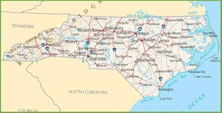 Amazon.com: Home Comforts North Carolina State Road Map Nc City