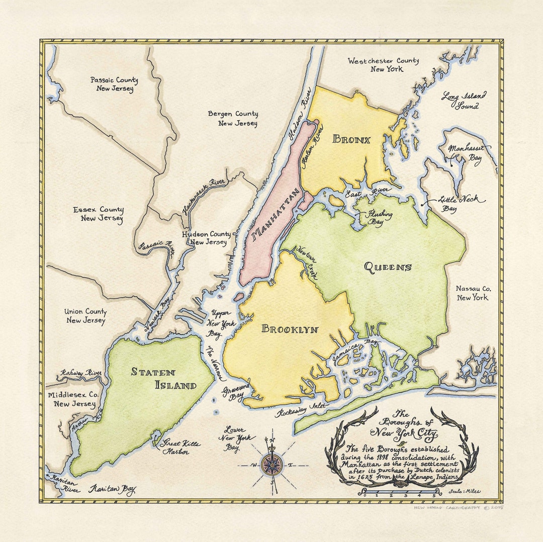 Boroughs of New York City Map, Five Boroughs Map Print, New York