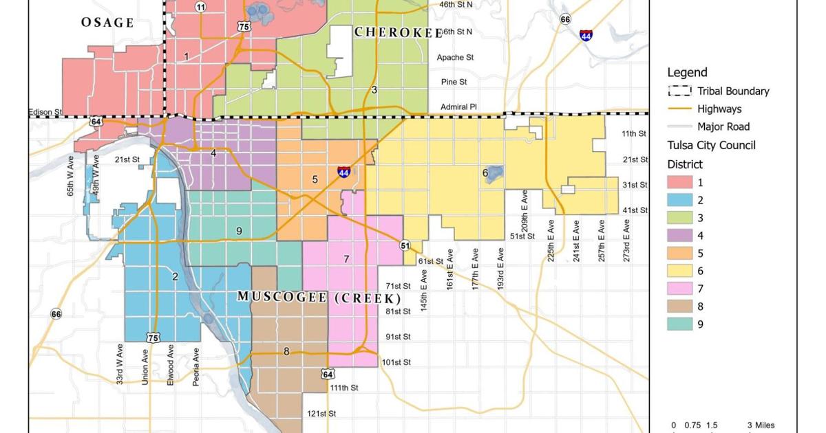 Tulsa City Limits Map Tulsa City Council and tribal boundaries: TULSA, Okla. โ The City of Tulsa announced East 31st Street just east of South 193rd Avenue will close for a 36-inch sanitary sewer installation. The closing will last approximately 30 days. . TULSA, Okla streets are cleared, the city is turning its focus on secondary streets near hospitals, schools and steeper areas of the city. For a full map of targeted streets, click .